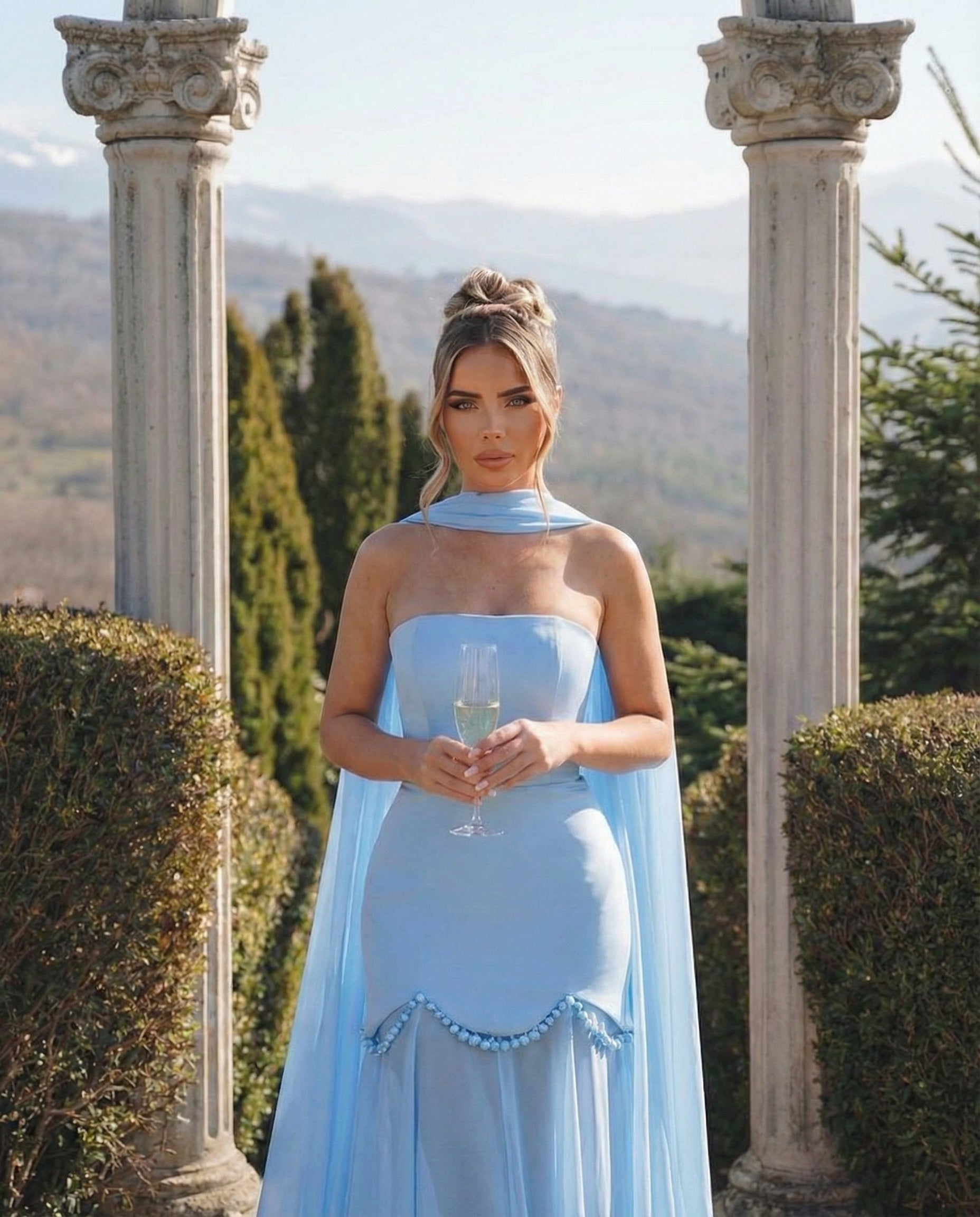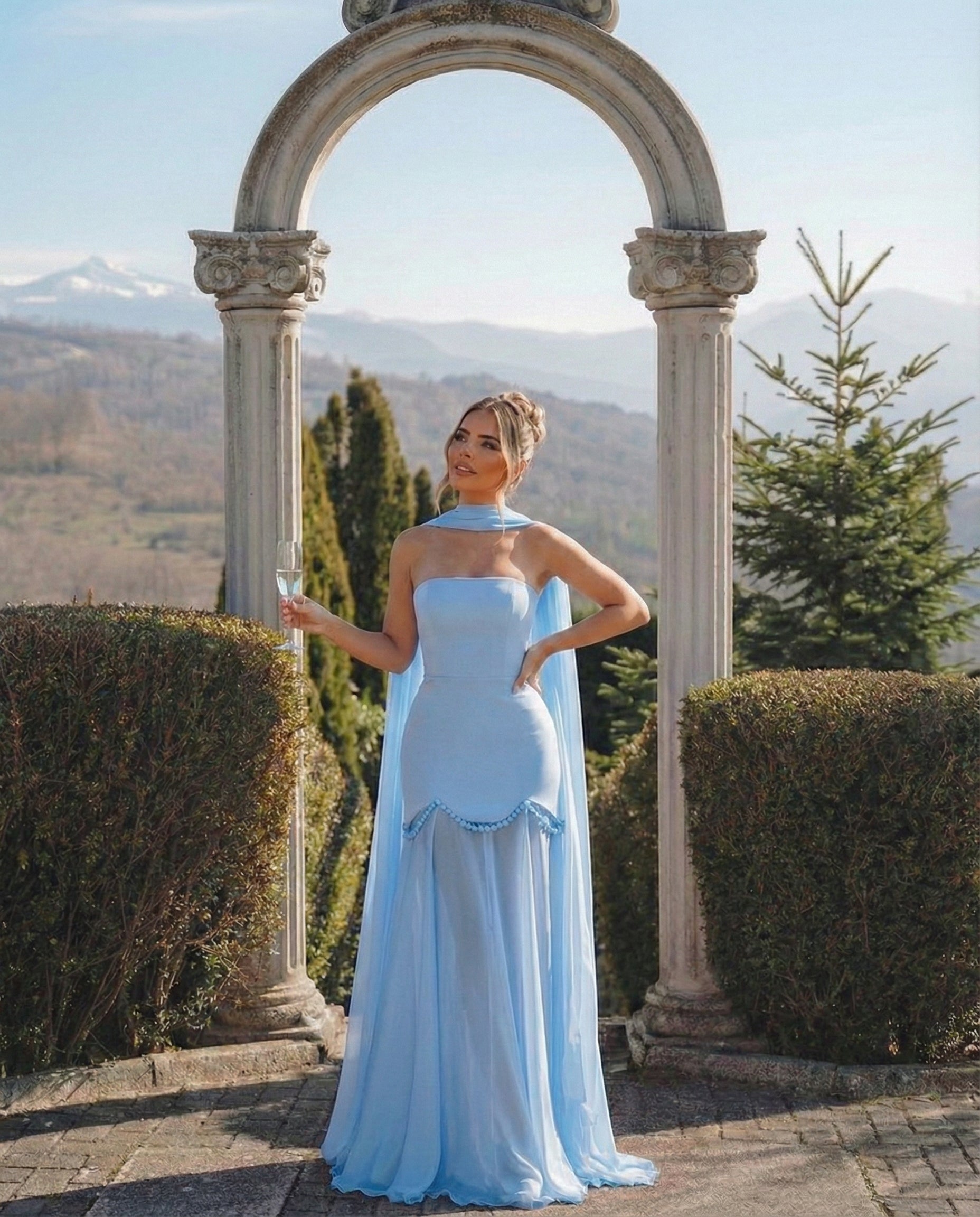 Rochia Elina este un model elegant și sofisticat, ideal pentru banchet, gală sau evenimente speciale. Bustul structurat, fără bretele, conturează talia și oferă susținere, evidențiind silueta într-un mod feminin. Detaliu tip esarfa adaugă un accent modern, iar fusta lungă, vaporoasă, cu inserție transparentă, oferă fluiditate și un plus de rafinament. Designul este completat de detalii decorative discrete, pentru un look statement și echilibrat.